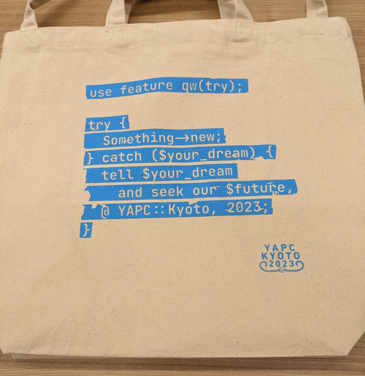 YAPC::Kyoto 2023には、はてなもスポンサーとして参加しており、会場で配布されたトートバッグのデザインも提供していました。そのバッグの片面にPerlのコードが書かれていたことにはお気づきいただけたでしょうか?