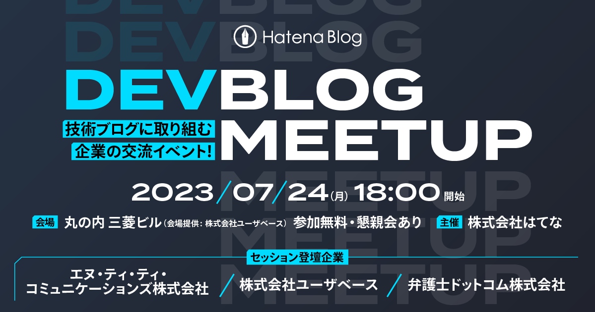 2023年7月24日にブログを使った技術情報発信に取り組む企業の交流イベントである「はてなブログ DevBlog Meetup」を開催しました。ご来場いただきましたみなさま、誠にありがとうございました。